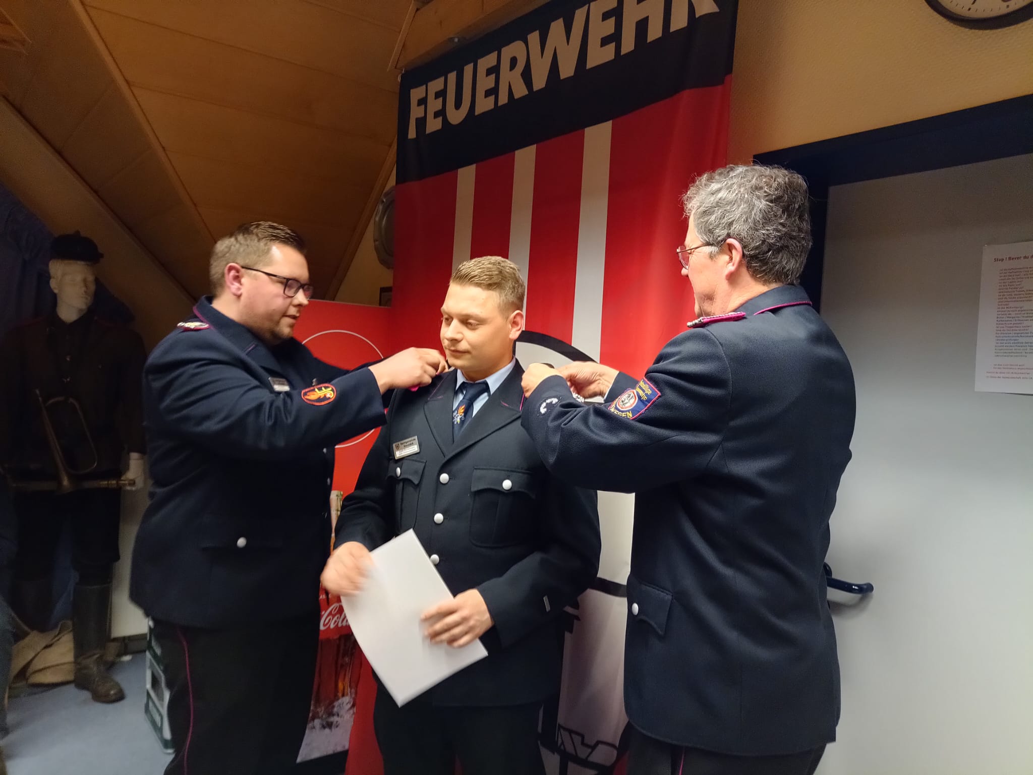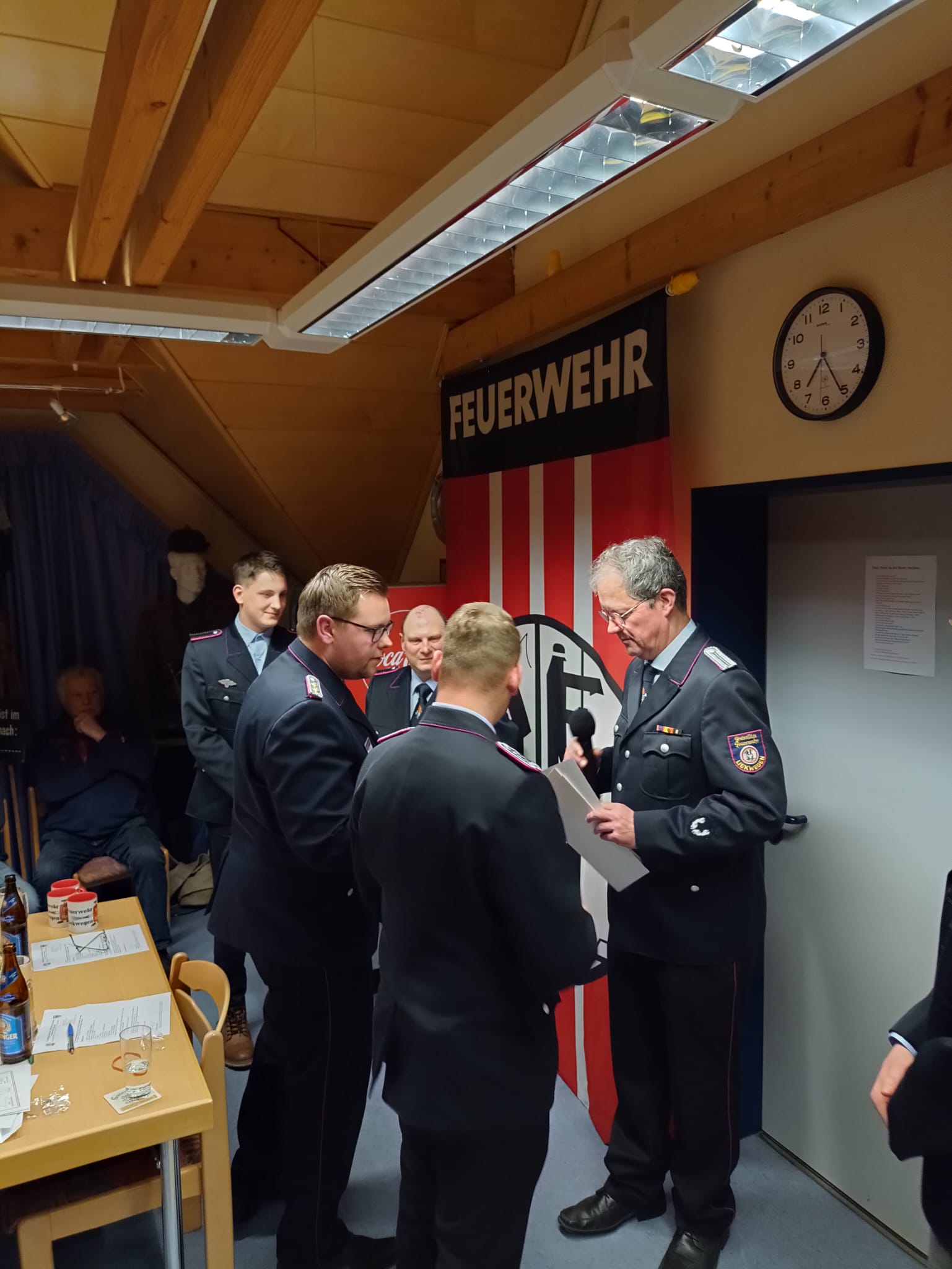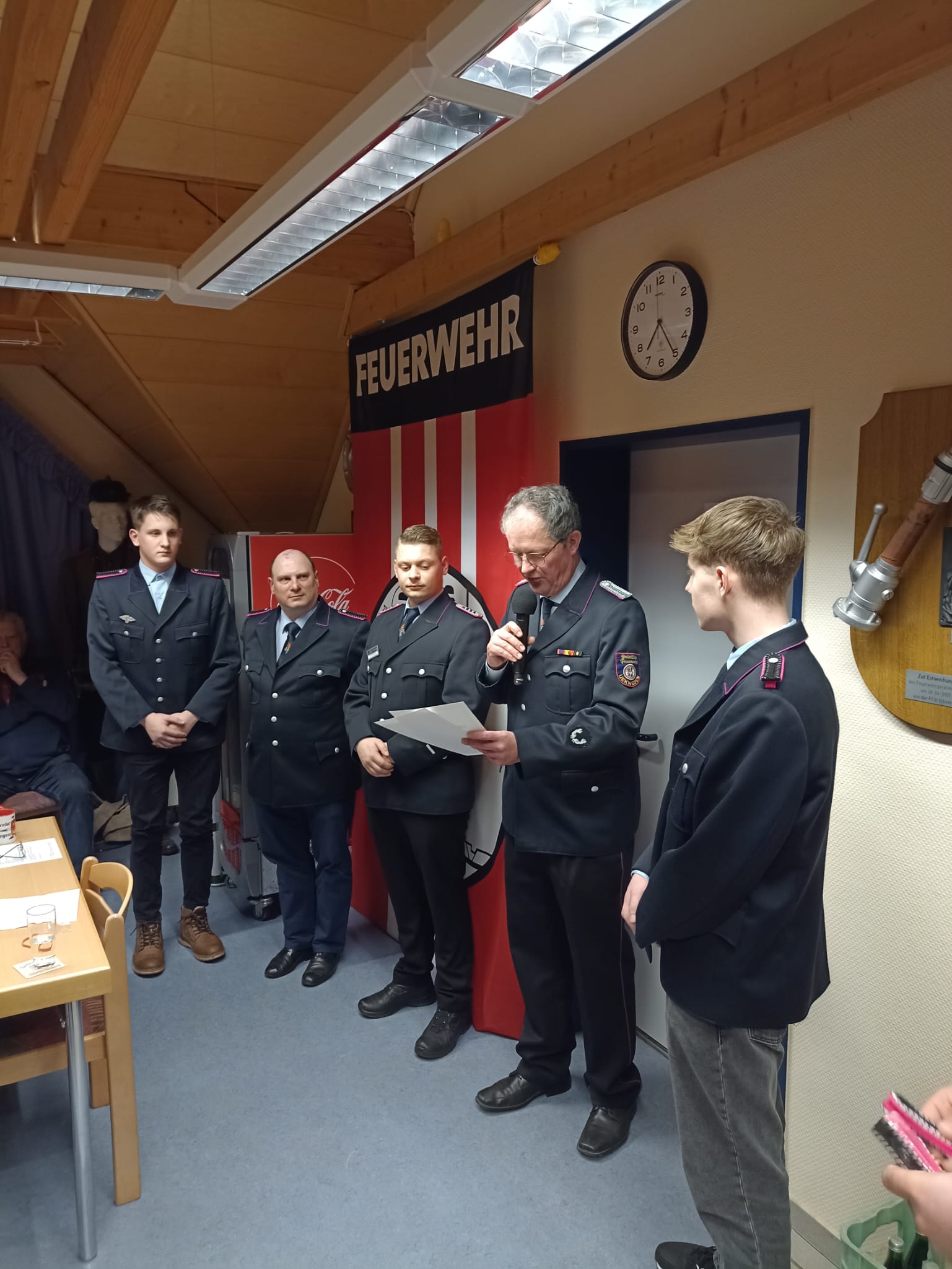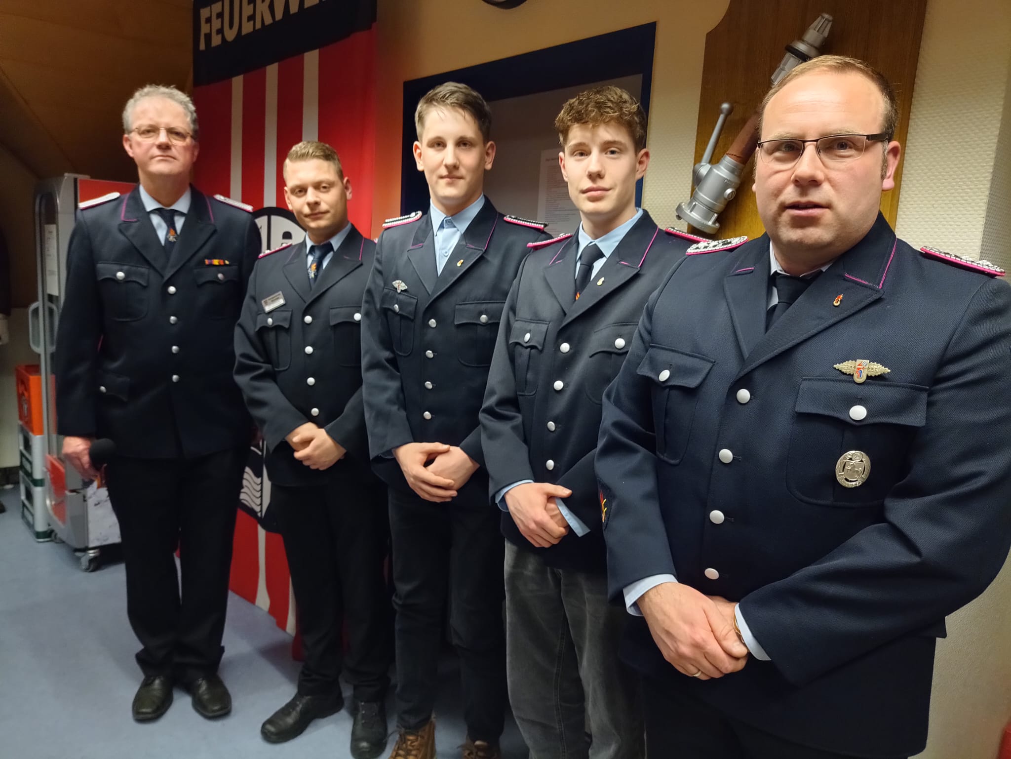 Des Weiteren wurden folgende Beförderungen vorgenommen: Shawn Bracht, Thomas Fitzke und Devon Bracht wurden vom Feuerwehranwärter zum Feuerwehrmann befördert. Fabian Schwarz wurde in Abwesenheit ebenfalls zum Feuerwehrmann befördert. Justin Zimmermann wurde vom Löschmeister zum Oberlöschmeister befördert.