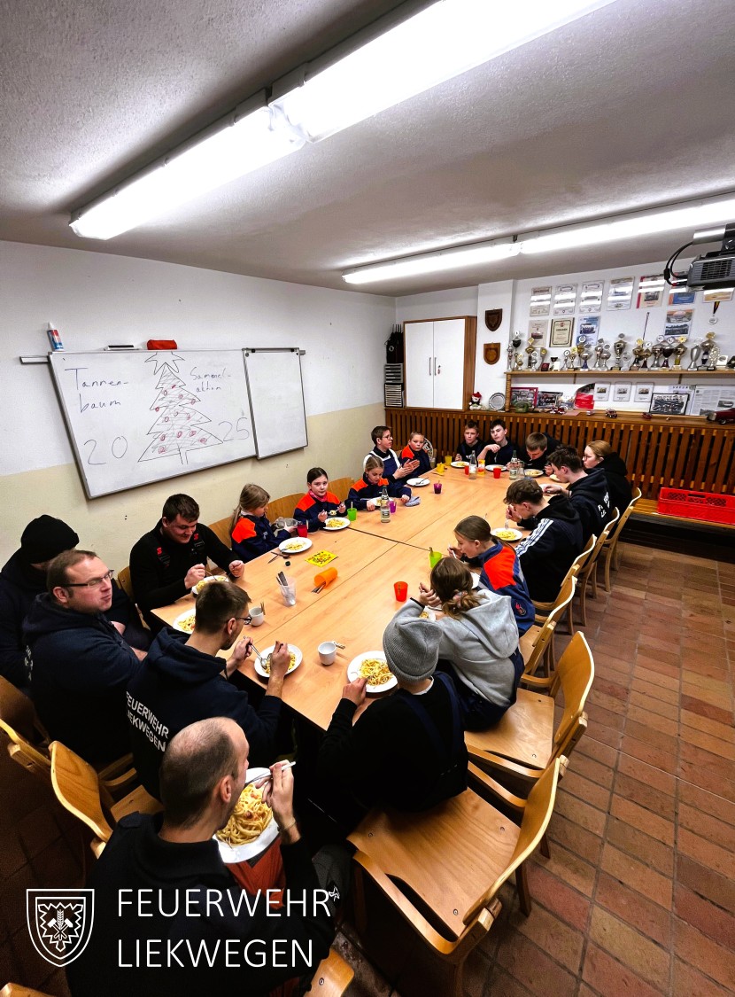 Die Kinder und Jugendlichen waren dabei über 6 Stunden im Einsatz. Und so wurde in dieser Zeit auch selber gekocht und gemeinsam im JF Gerätehaus gegessen.