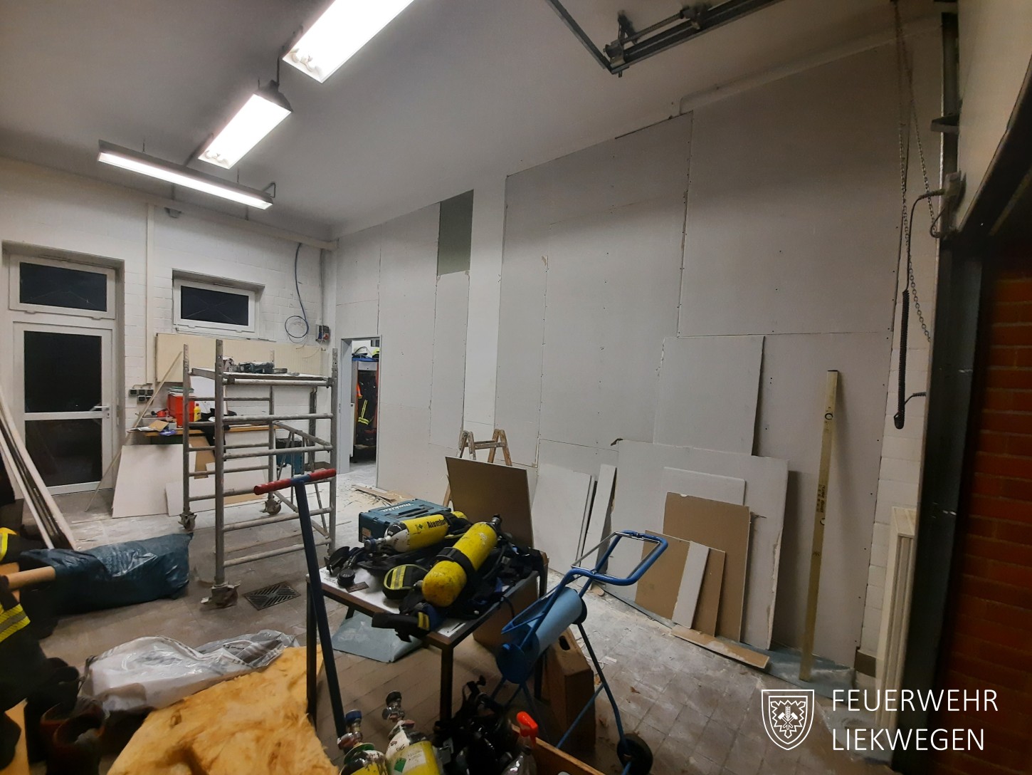 Ergebnis ist jetzt ein komplett neuer Umkleidebereich und ein frisch renovierter Stellplatz für das LF10! Damit haben wir eine wichtige Hürde genommen und sind in großer Vorfreude auf das neue Fahrzeug.