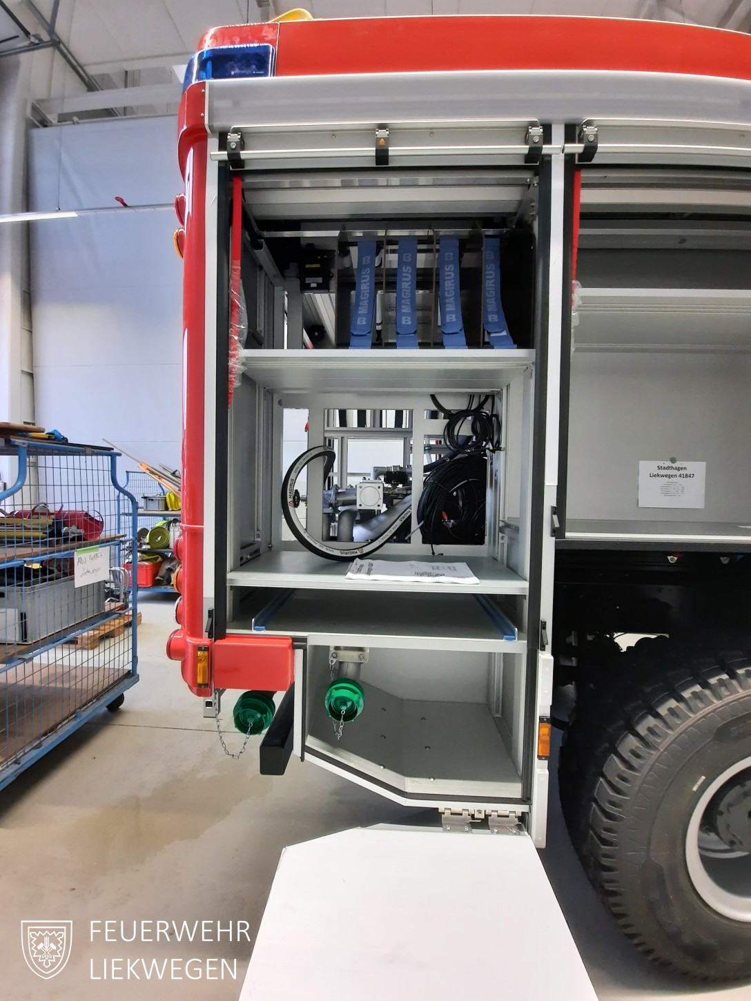 - Wo wird kleineres feuerwehrtechnisches Material verstaut, das von uns beigestellt wird?